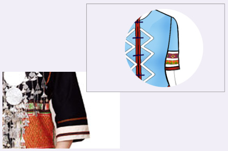 袖子借鉴黎族传统袖型,特色镶边,突出亮点,精致美观。