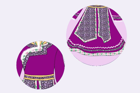 3. 纹饰 借鉴蒙古族传统服饰,运用蒙古族特色花纹织带,蒙古族文化内涵融入服饰,美观大方.