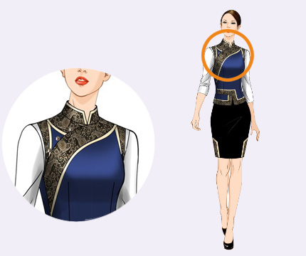 | 3. 短裙 工作服短裙借鉴满族旗袍样式,结合现代服饰特点,舒适美观。