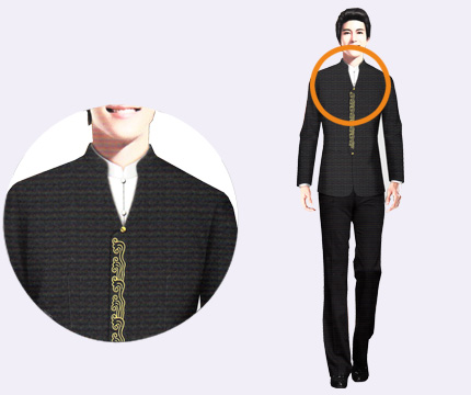 领型采用干练的小立领设计,简单而又显得美观,布料的纹路则赋予了民族文化内涵.